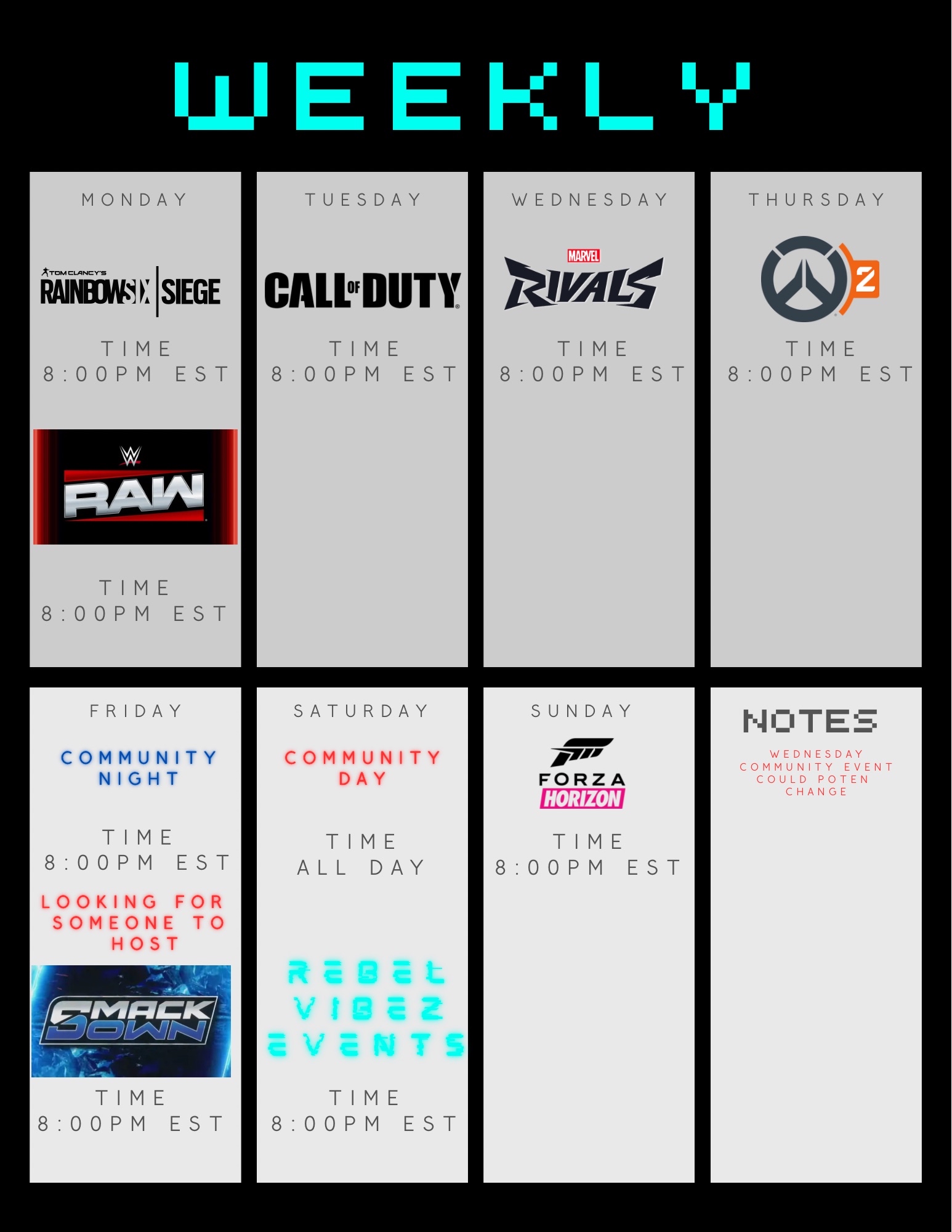 🎮 Community Events – Rebels continue to show up, show out, and bring the fun. Starting today, some changes will be made to our weekly events lineup—so keep an eye out for the updated schedule and be ready to dive into fresh new Vibez!